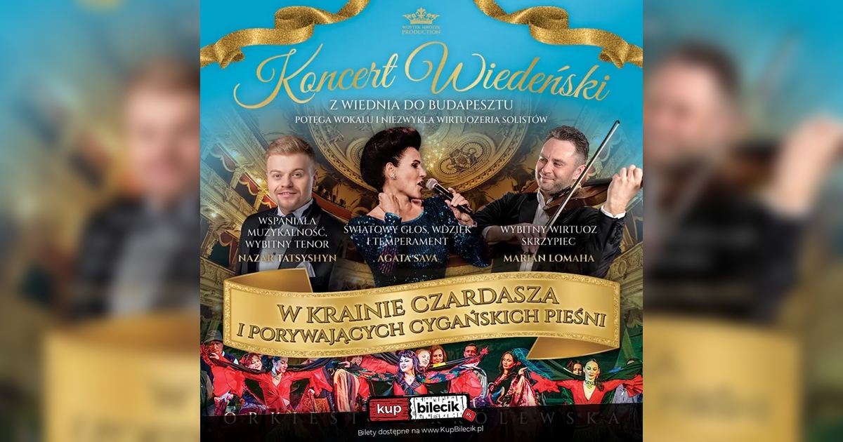Koncert Wiedeński "W Krainie Czardasza" to potęga wirtuozerii i wokalu, która wzbudza entuzjazm nie tylko dzięki odmiennym możliwościom głosowym, ale także poprzez porywającą energię na scenie, która udziela się publiczności. Każdy koncert jest świętem muzyki wokalnej, a publiczność wprost uwielbia ich miły i autentyczny sceniczny wizerunek. Zapraszamy wszystkich melomanów i miłośników światowej wirtuozerii i wokalistyki w klimatyczną podróż w dobrym muzycznym stylu do przebogatej Krainy Czardasza.